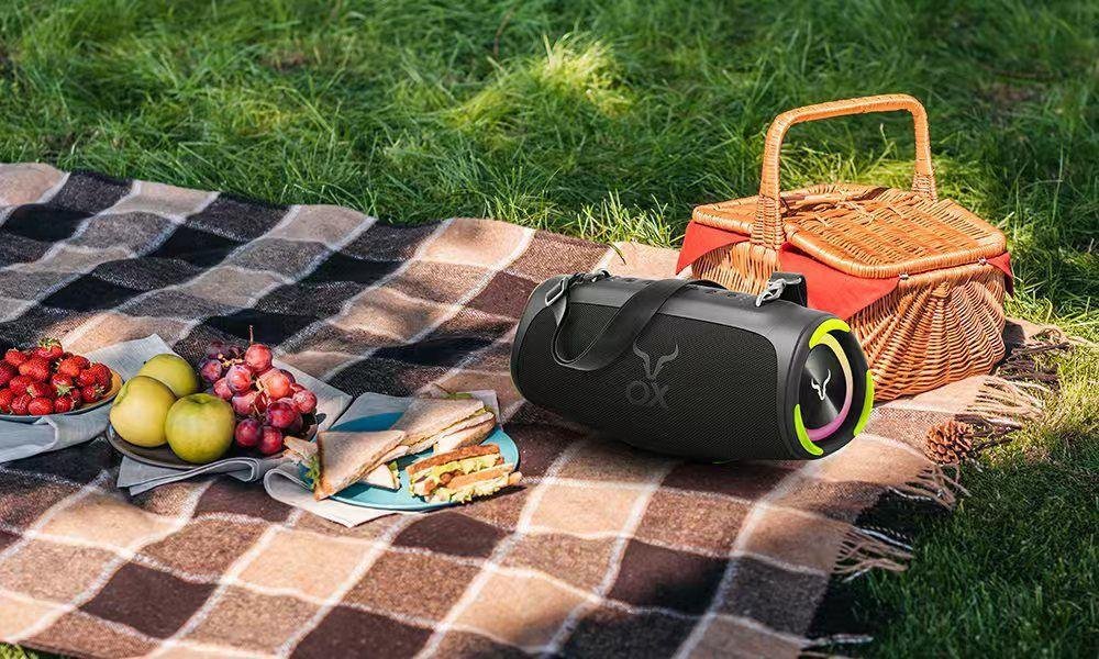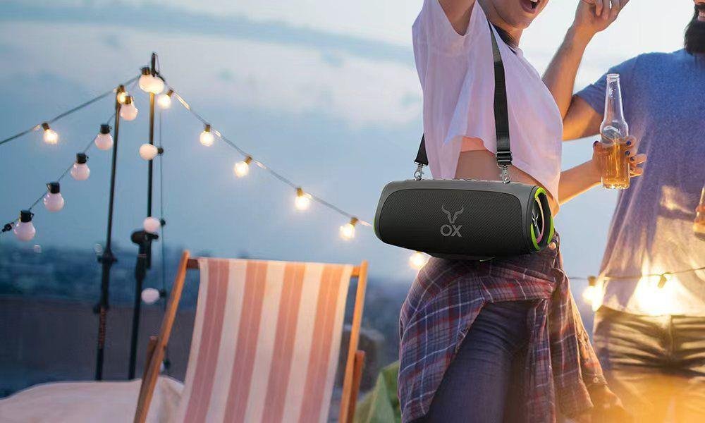 High-power party speaker with RGB lights, deep bass, and broadcast mode. Ideal for outdoor events.